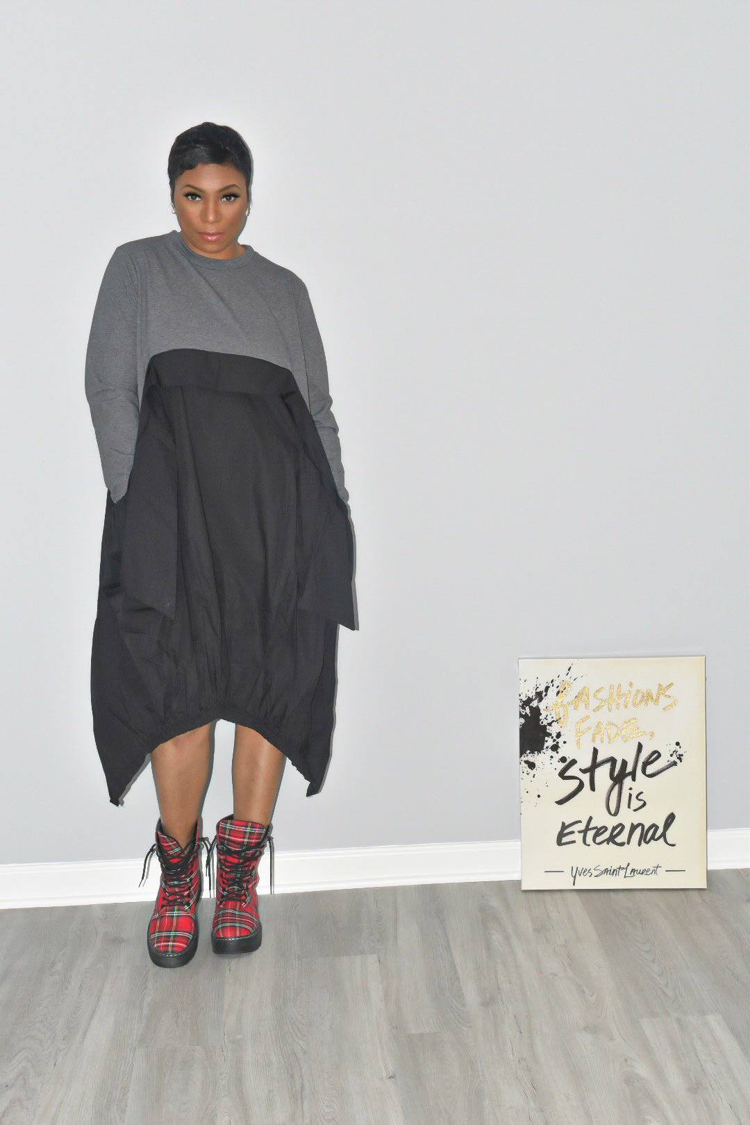 Pre-Order of the Irregular Black on Grey Loose Fit Long Sleeved Dress