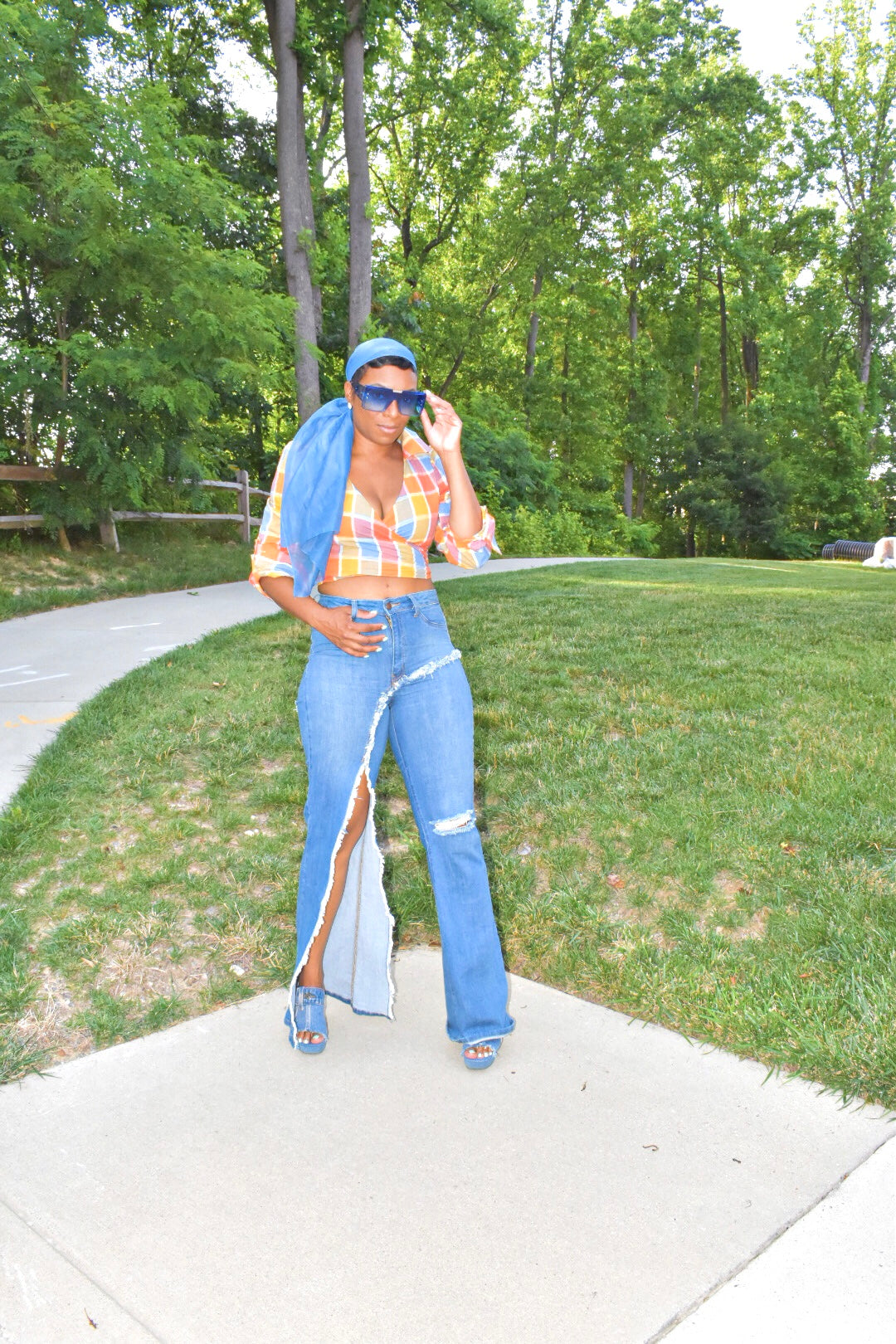 Top can be worn as short or long sleeve. Model is wearing the item short sleeved.