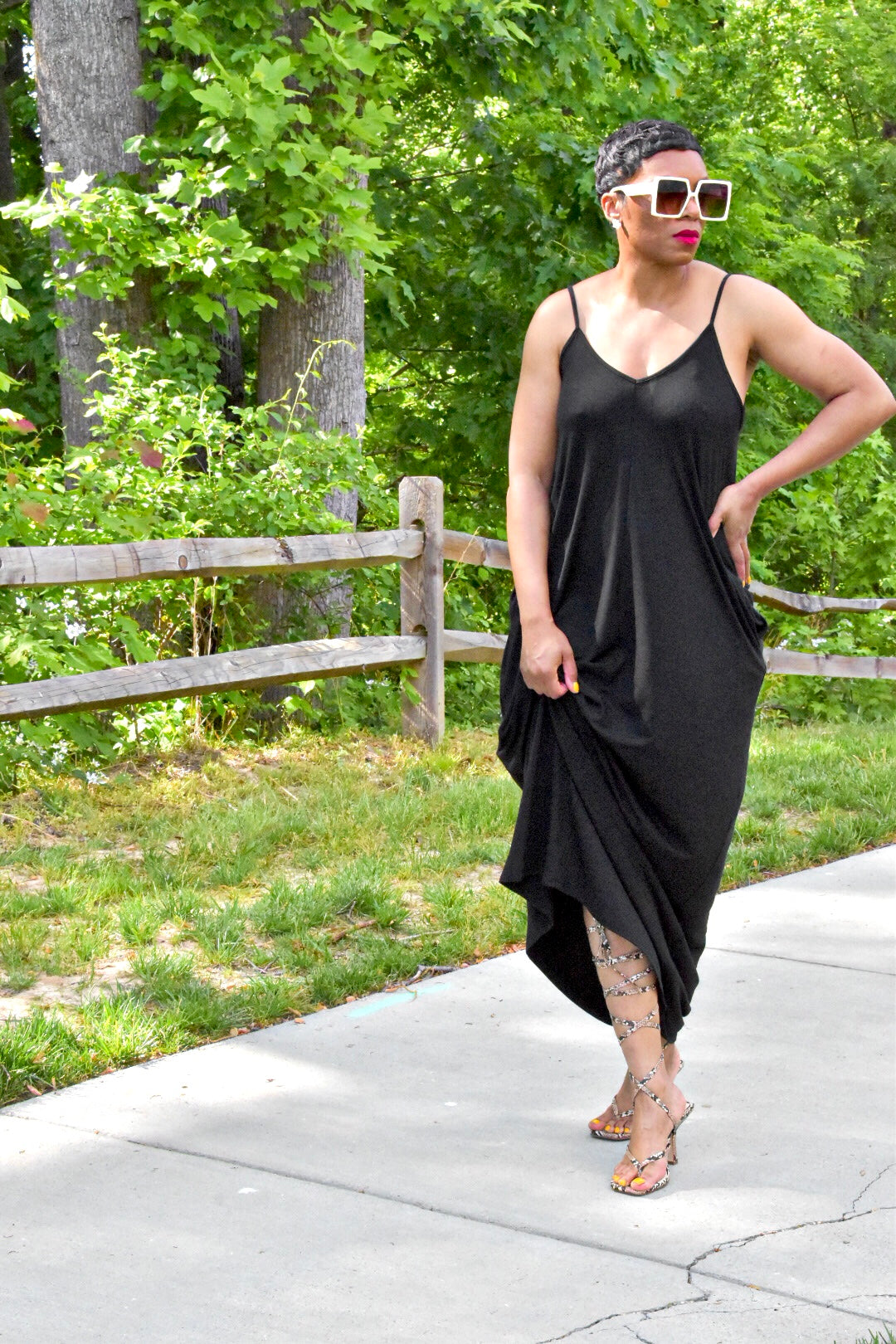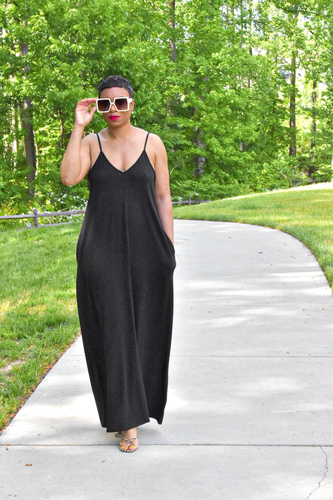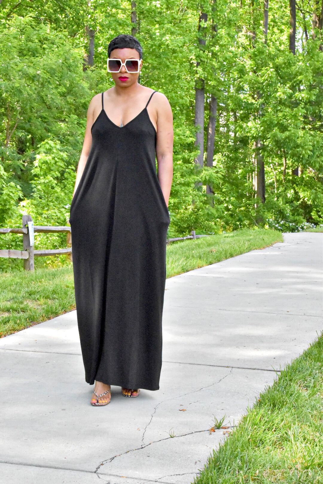 V-Neck Cami Maxi Dress with Side Pockets and Adjustable Straps