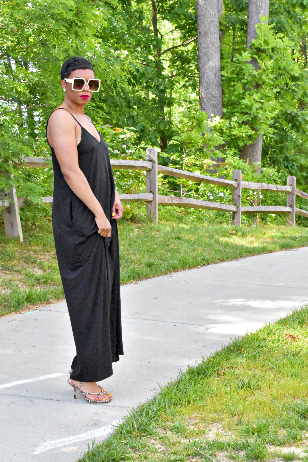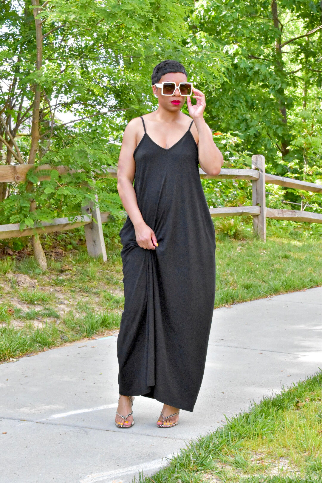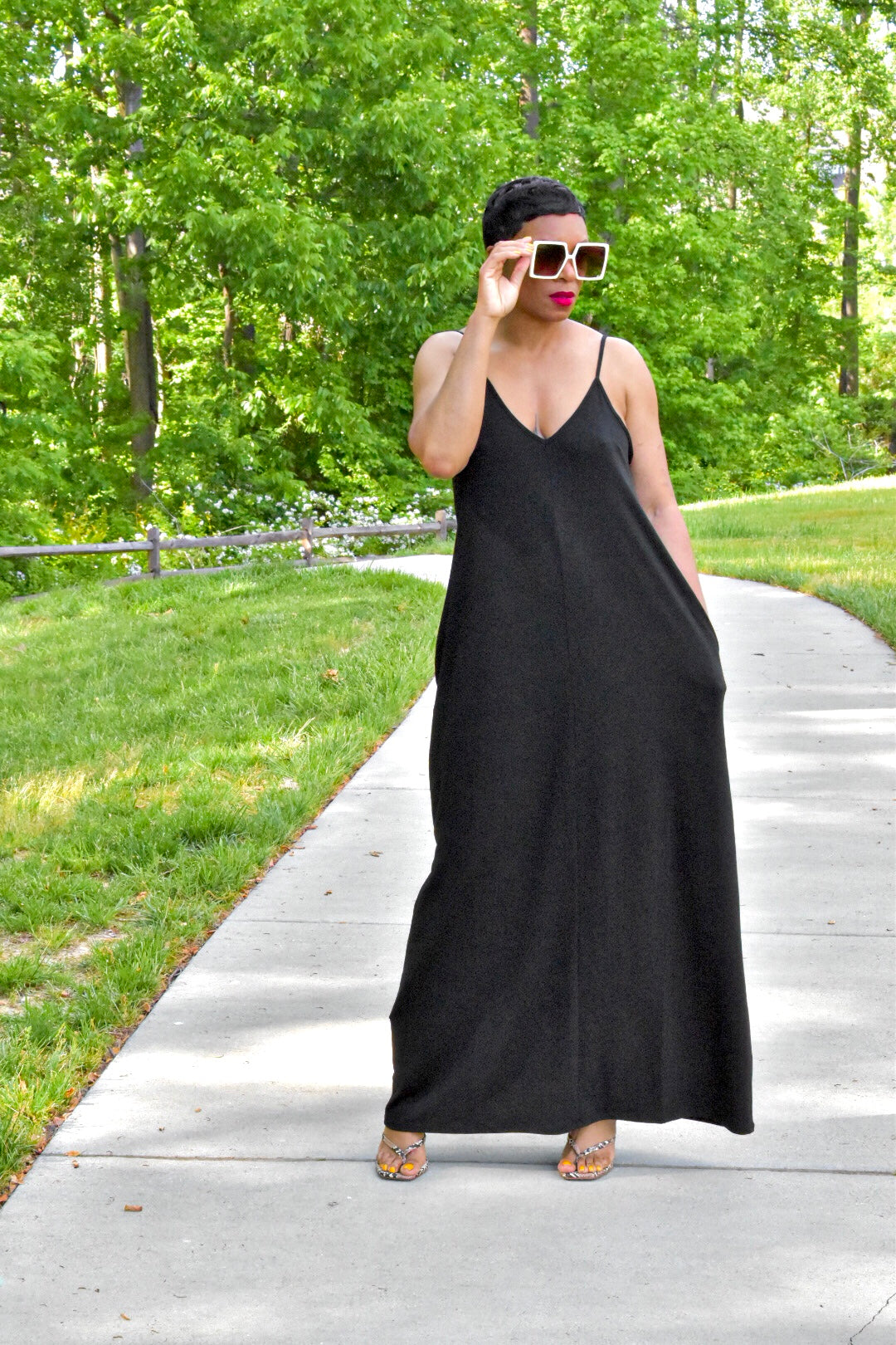 V-Neck Cami Maxi Dress with Side Pockets and Adjustable Straps