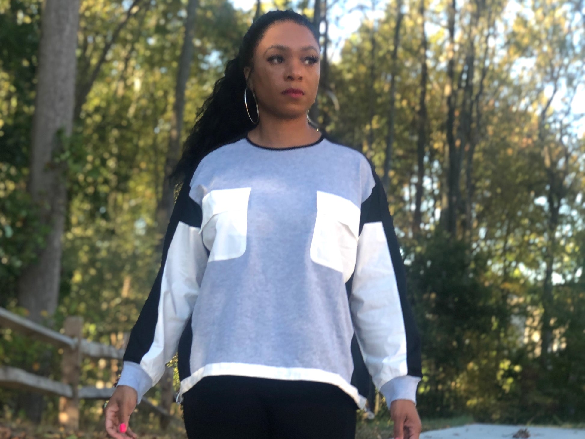 POPPIN Color Blocked Two Pocket Sweatshirt