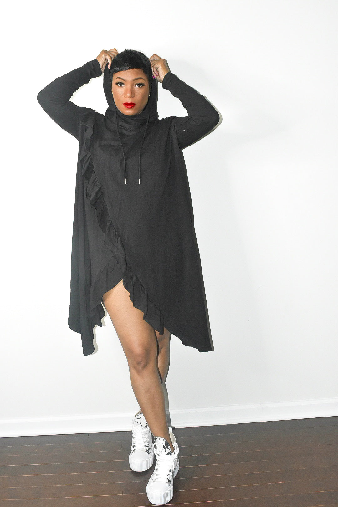 Top has split and can be paired with jeans, leggings, shorts. You create your own rule.