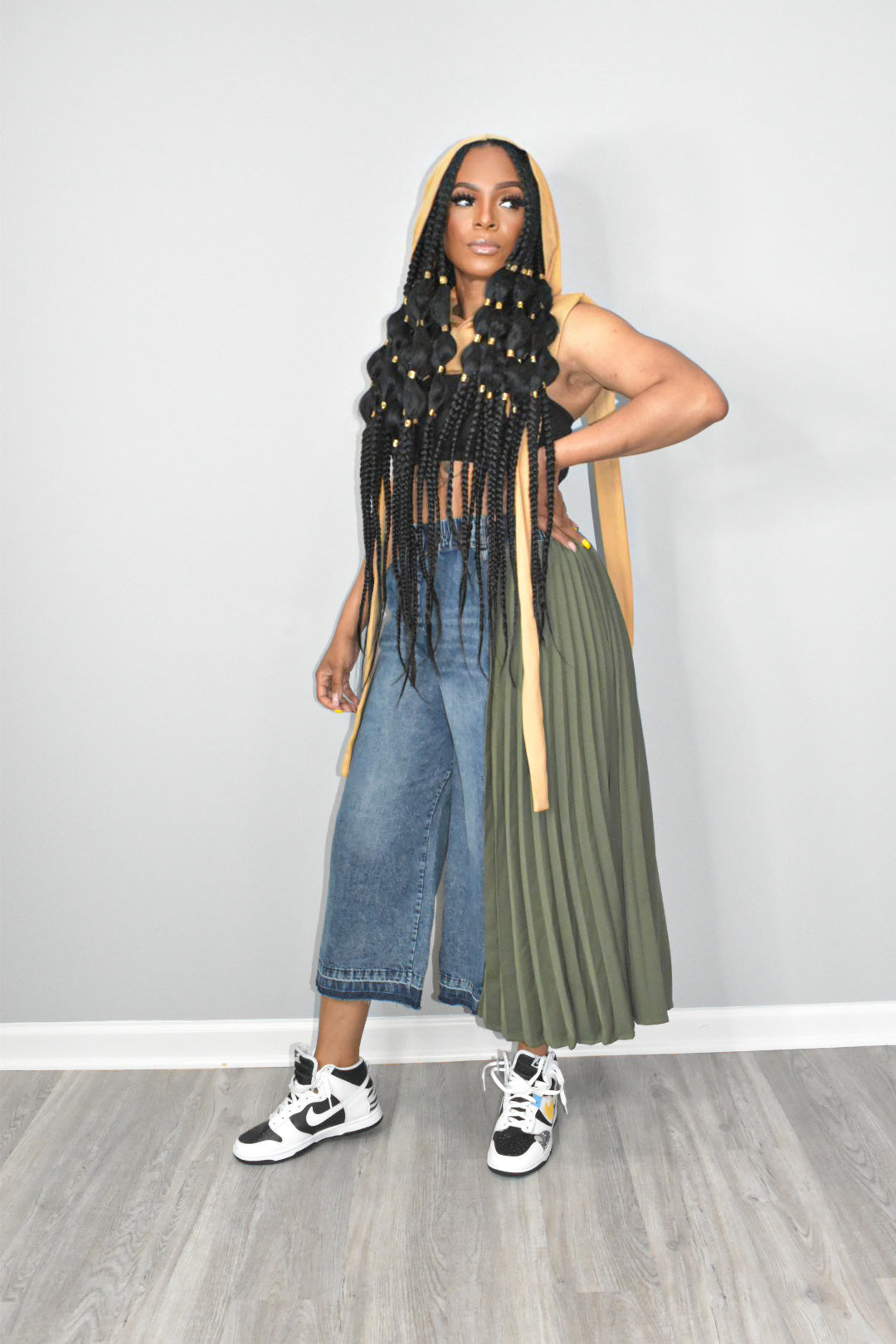 These Pressure Denim and Pleated Capri Jeans offer a unique and stylish look. Crafted from a combination of denim and pleated fabric, these jeans have an elastic waist for a comfortable fit and freedom of movement. Perfect for every day, these jeans are sure to become a wardrobe staple.