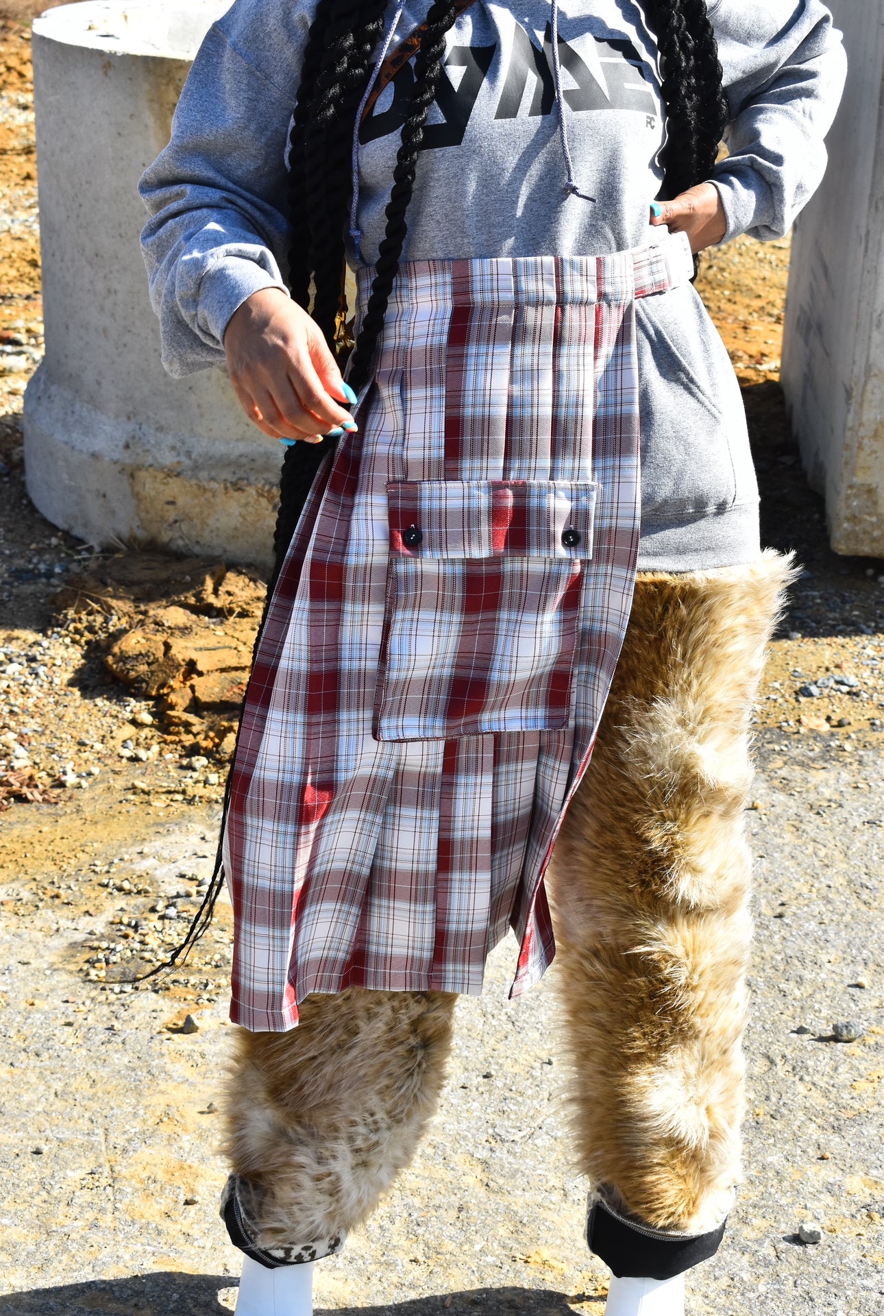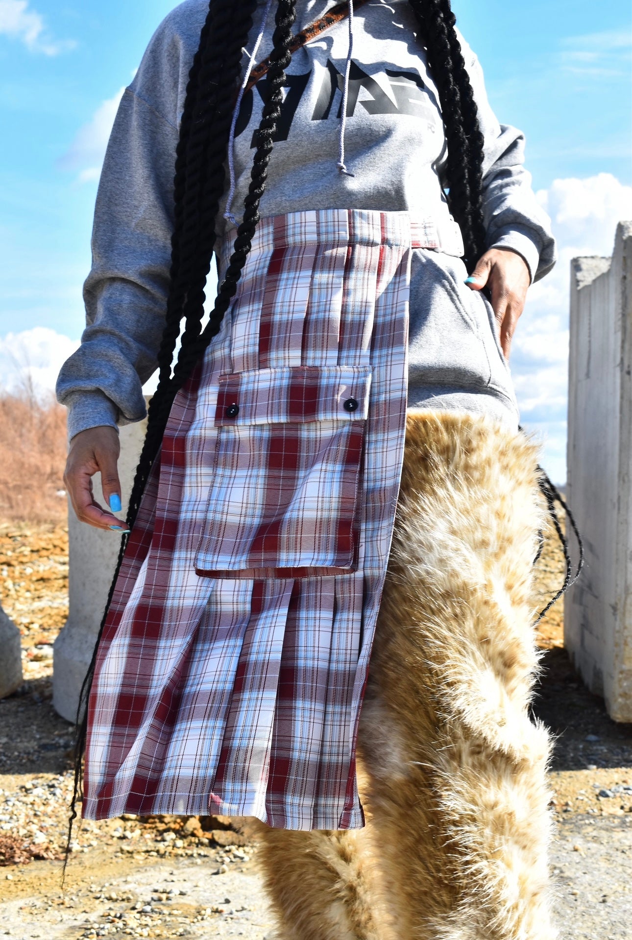 Add a touch of contemporary edginess to your wardrobe with our Pria Plaid Skirt. Perfect for any occasion, this versatile skirt can be paired with a variety of tops and bottoms. With its adjustable waist, it offers the perfect fit for any body type. Complete the look with confidence and style.