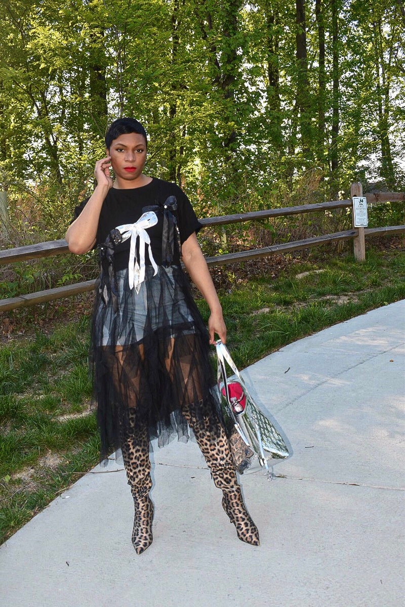 Sequin Triple Bow Tulle Shirt